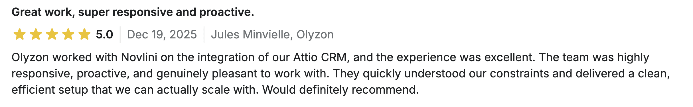 Before engaging Novlini, Olyzon relied on a legacy CRM and spreadsheets. There was no central system for lead management, enrichment, outbound activation, or accurate pipeline reporting.